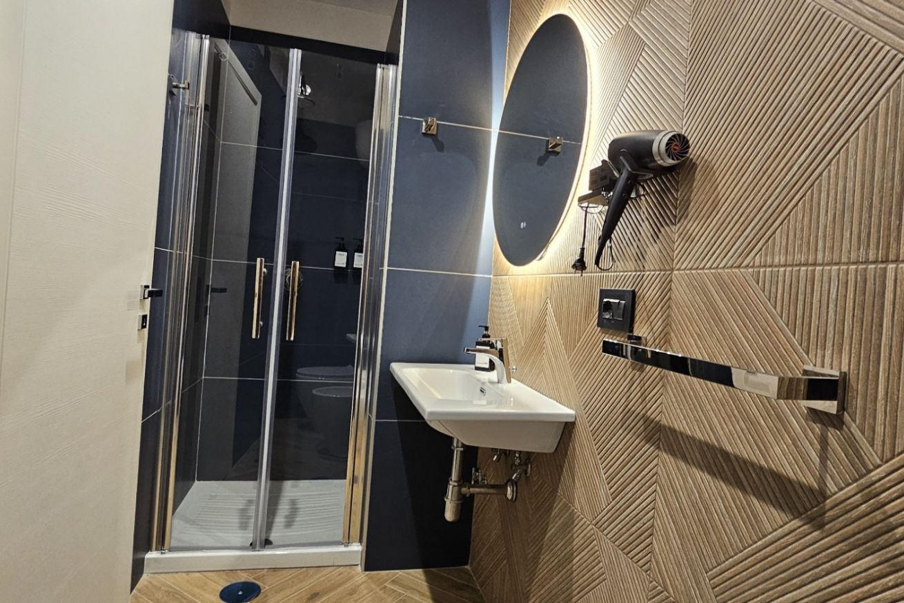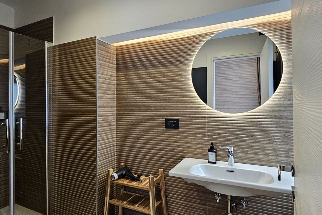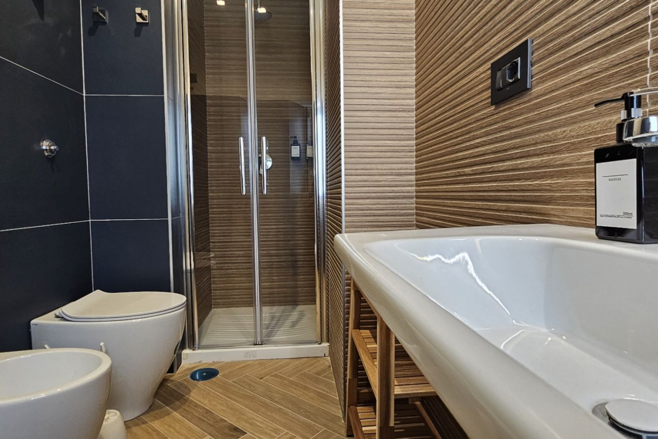 Completa di bagno con doccia, asciugamani, servizio di cortesia quali shampoo, sapone, asciuga capelli, spazzolino denti.